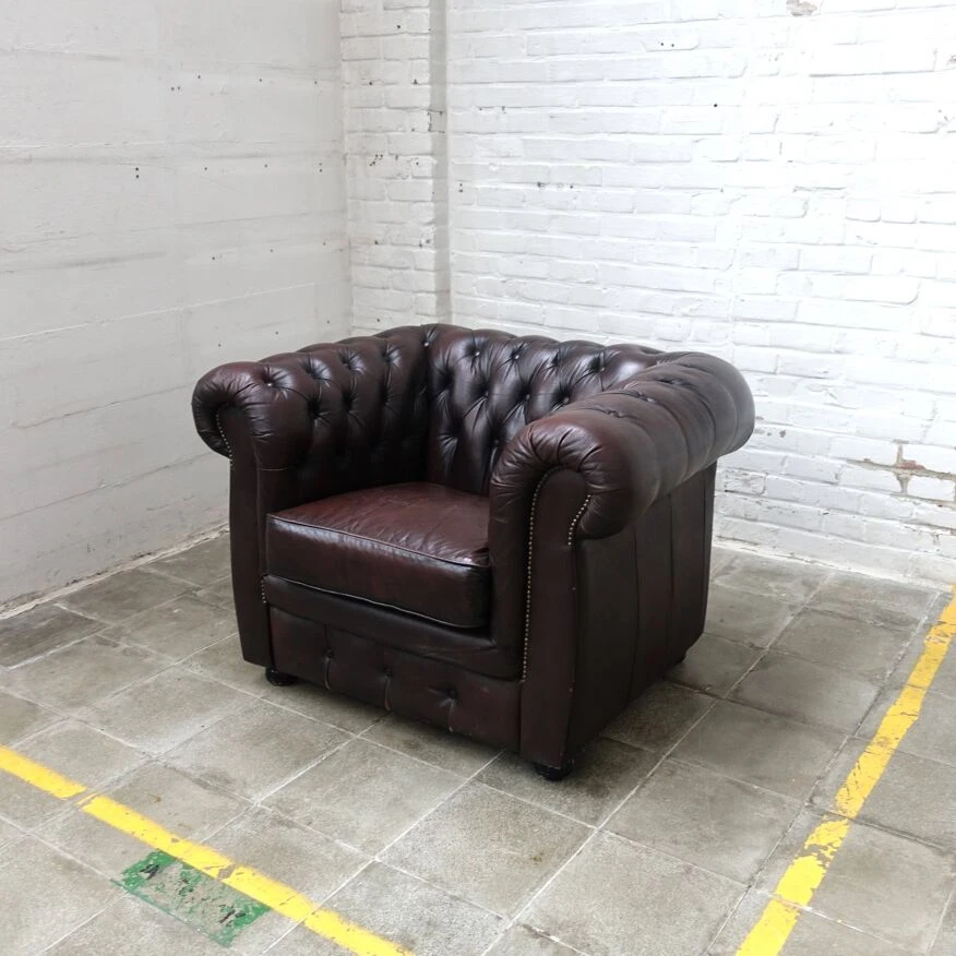 Vintage club chairs, oxblood-brownish colored.