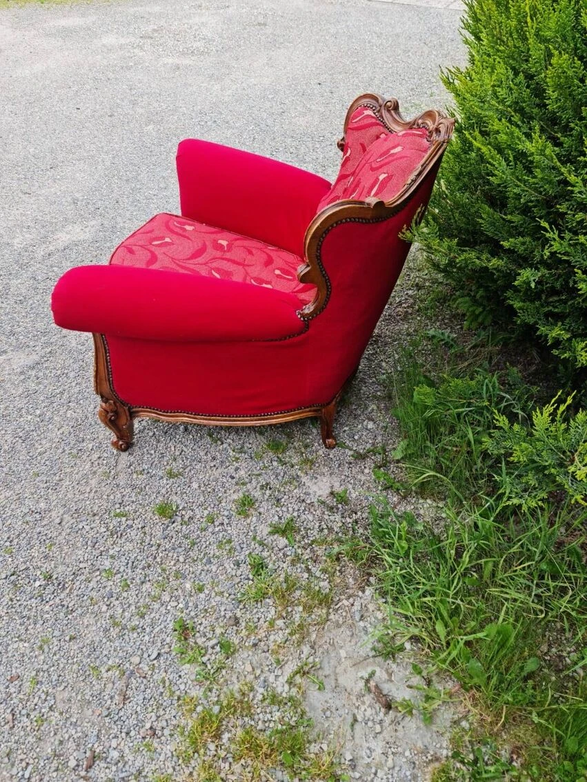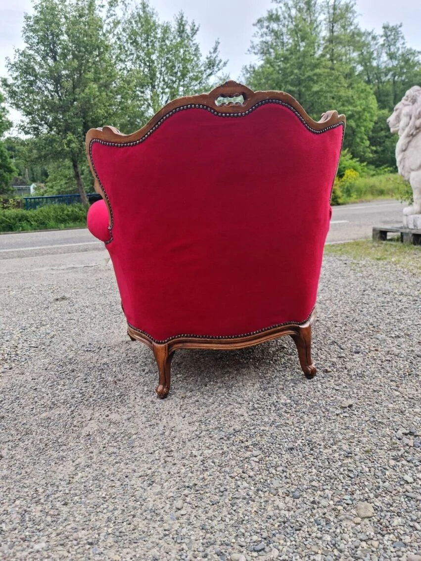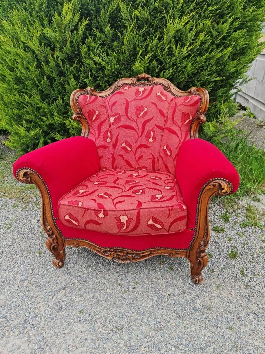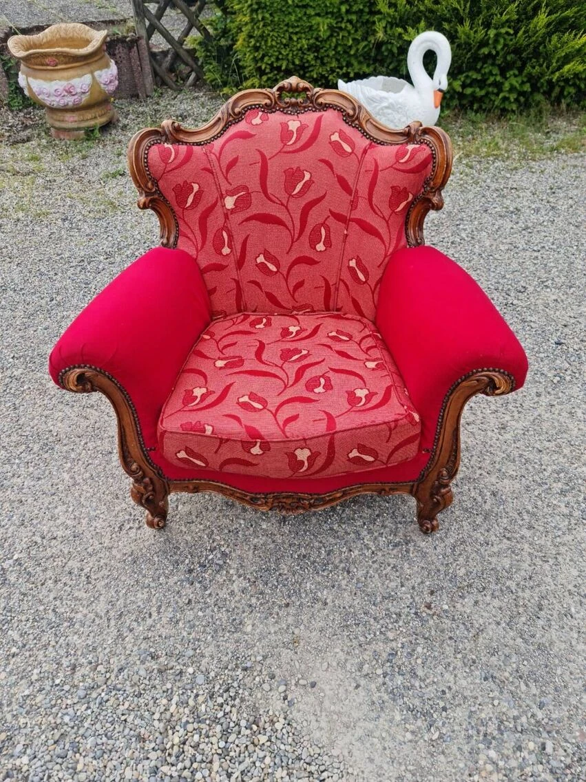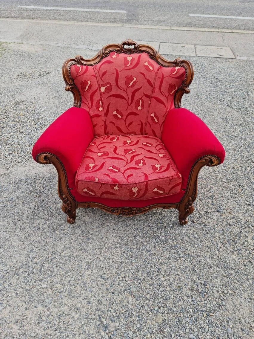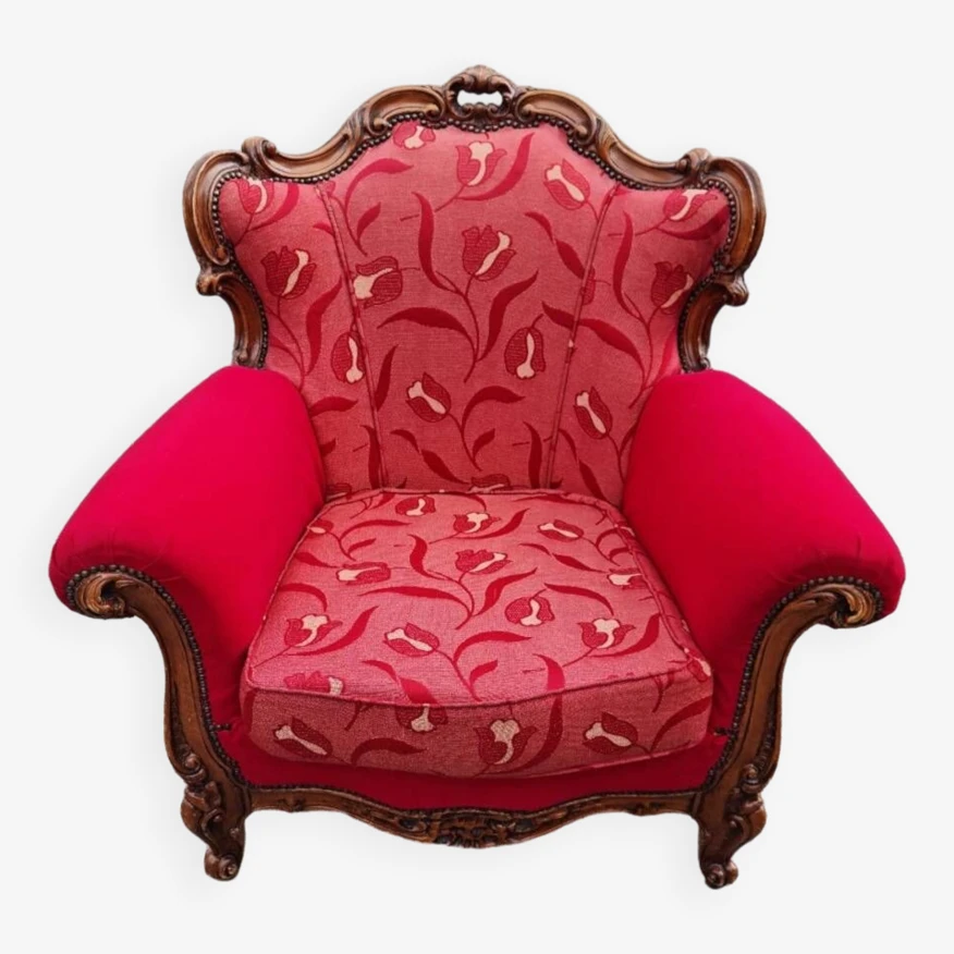 Vintage louis XVI style armchair, in oak leaves and velvet.