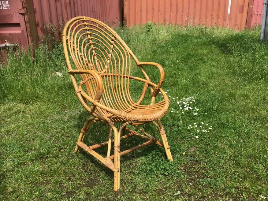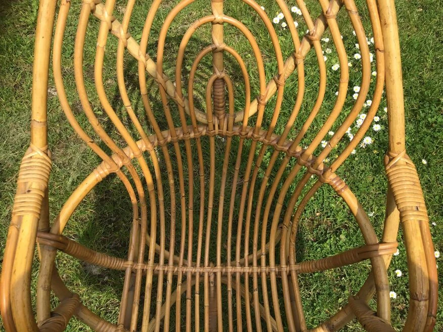 This attractive armchair sports a retro design with its distinctive ovoid lines and timeless charm. With a total backrest height of 92 cm, it offers optimal comfort for relaxing. The minimum seat height of 32 cm and the knee depth of 41 cm provide ergonomic support, ideal for long hours of rest. With ideal dimensions – 72 cm deep and 60 cm wide – this armchair offers ample space to sit comfortably. In addition, its light weight of only 3.50 kg makes it easy to move according to your needs, whether in your living room, on your terrace or in your garden. This copy is in excellent condition, clean, healthy, stable and solid. The photos attest to its quality and impeccable appearance. Don’t miss this opportunity to add a touch of vintage charm to your interior or outdoor space with this stunning rattan armchair! Easy to move thanks to its light weight, it will fit harmoniously into any room in your house, in your garden or on your terrace. I can deliver in Belgium 🇧🇪 and in the north of France 🇫🇷 up to 100km around Mons (b) for 0.40€ per km round trip.
