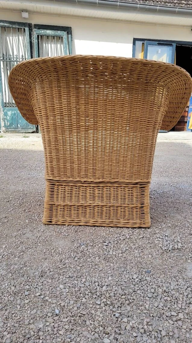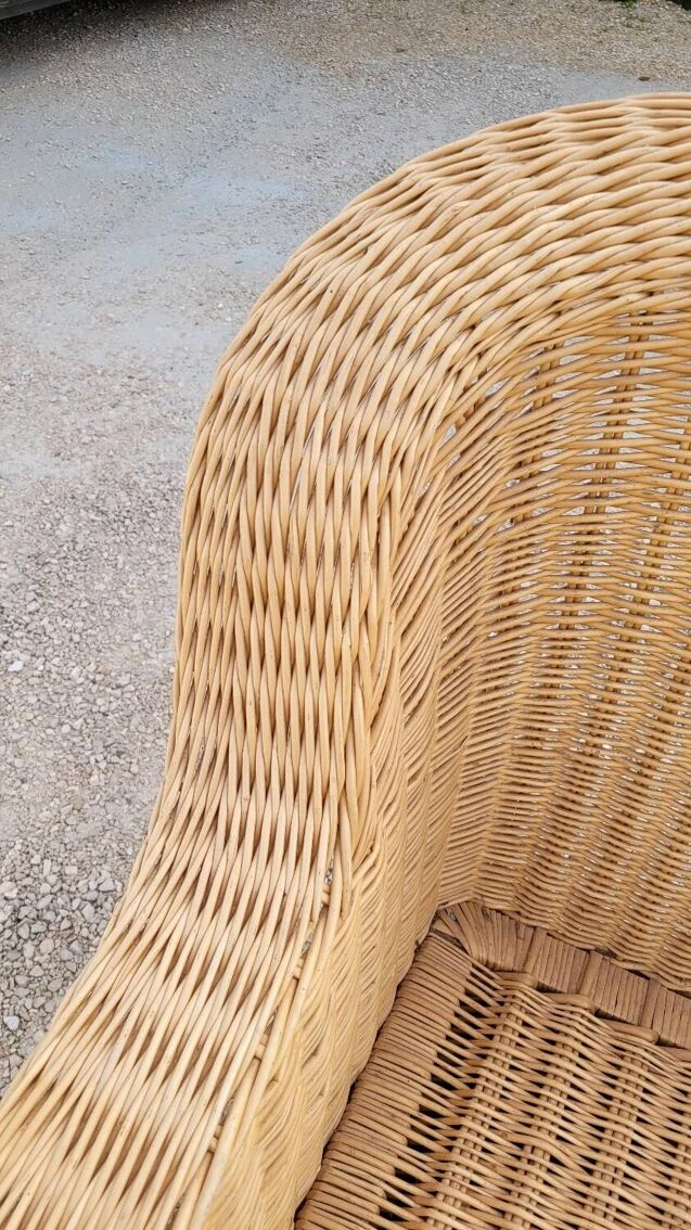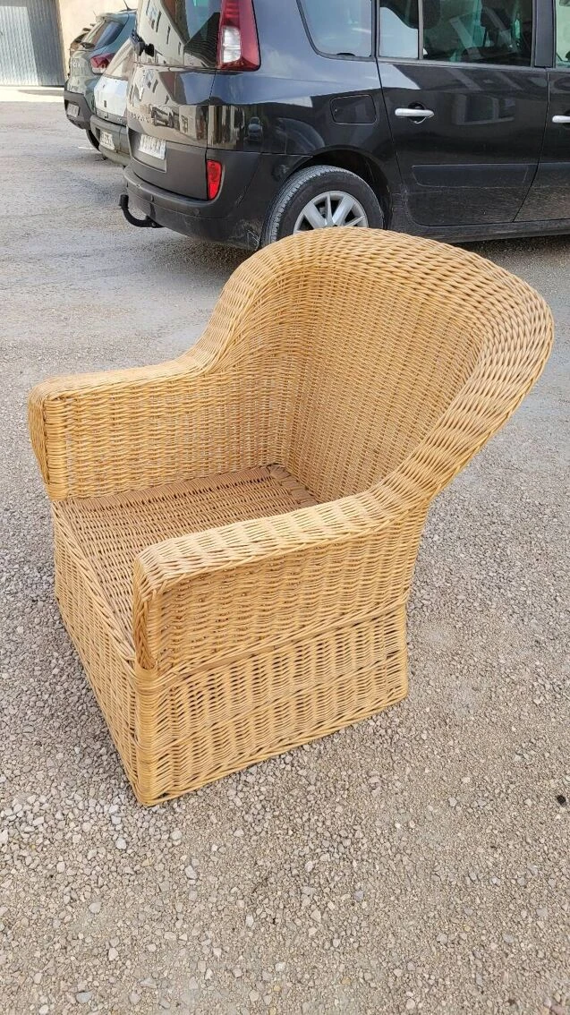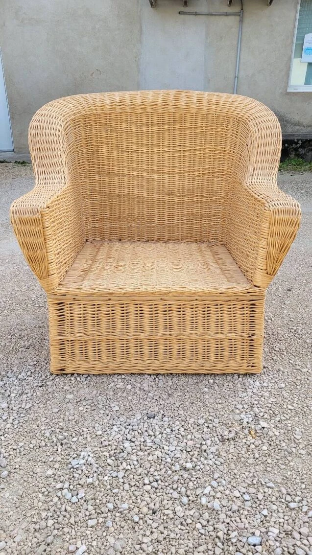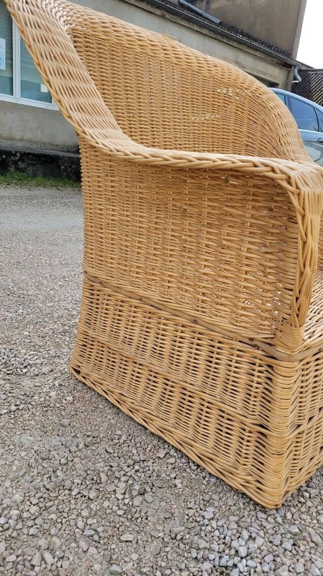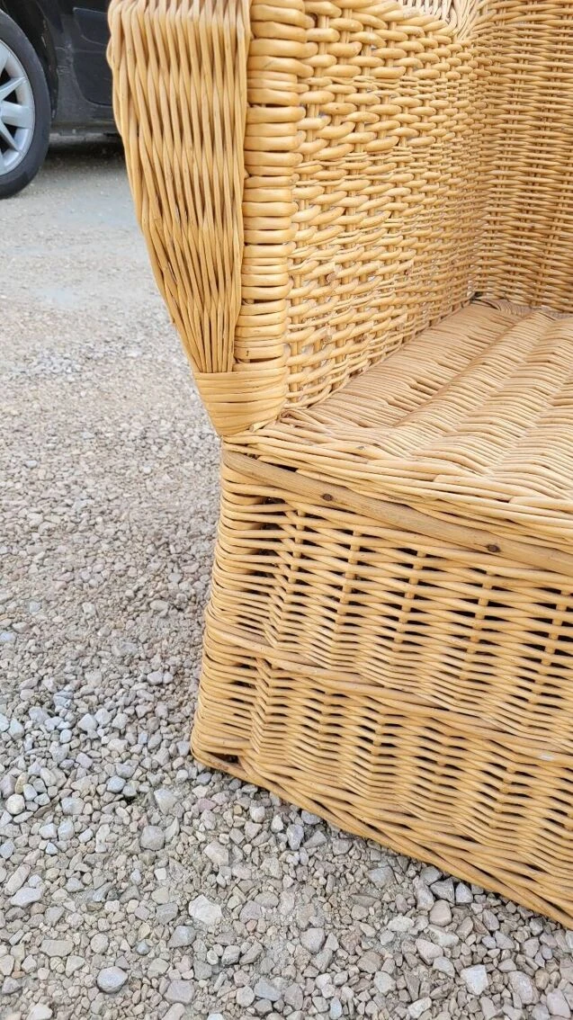 Magnificent and rare colonial style armchair in rattan/wicker, old quality manufacturing from the 1950s.