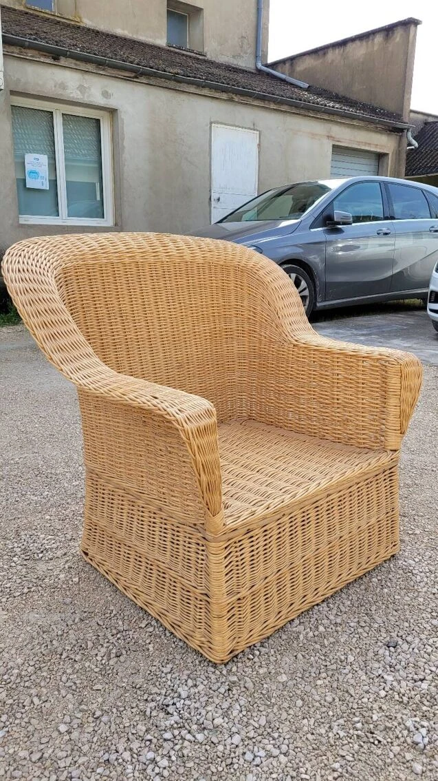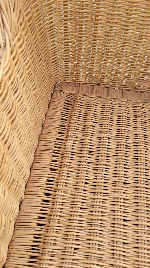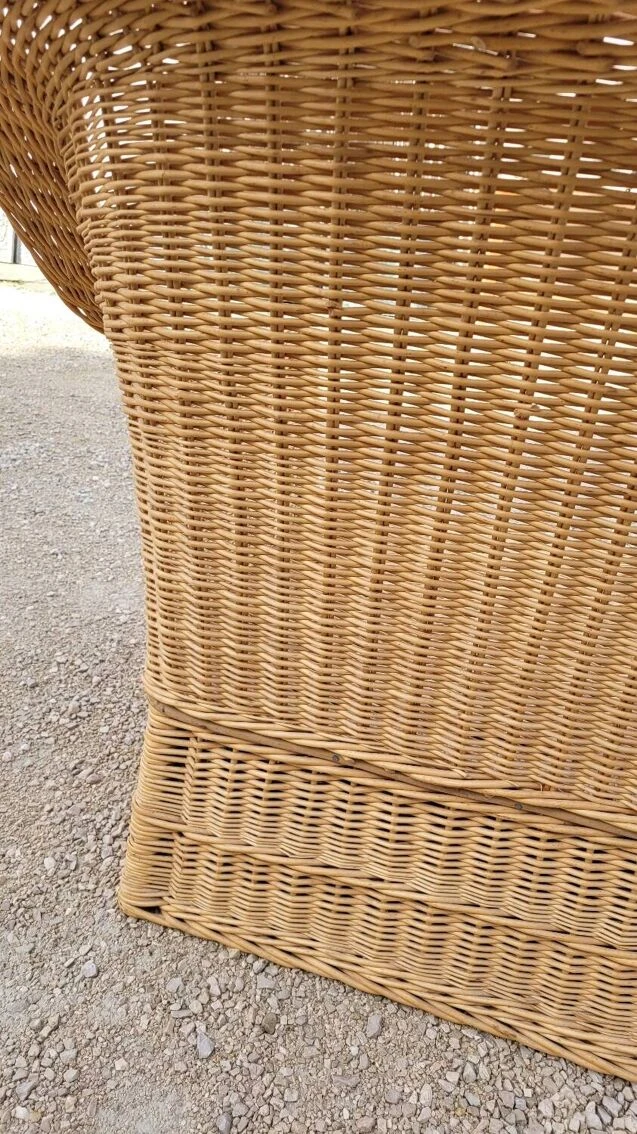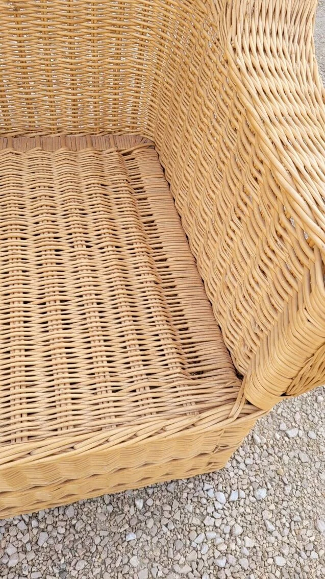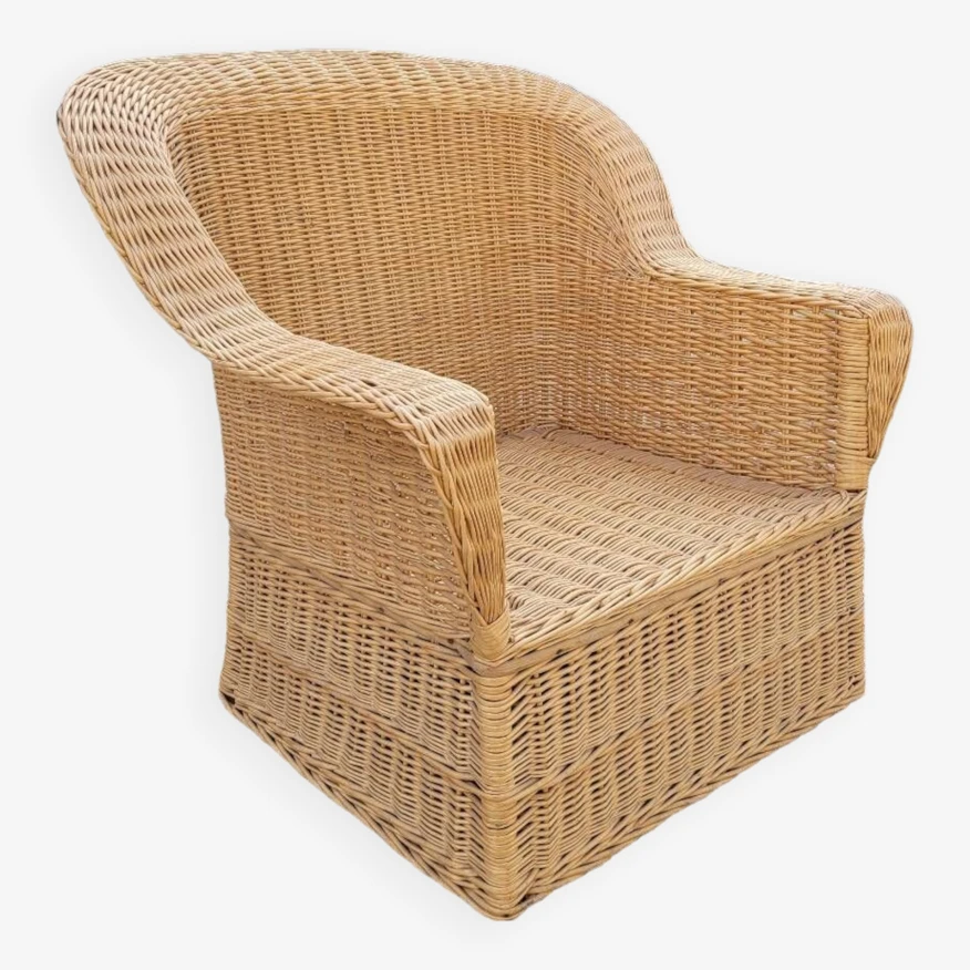 Magnificent and rare colonial style armchair in rattan/wicker, old quality manufacturing from the 1950s.