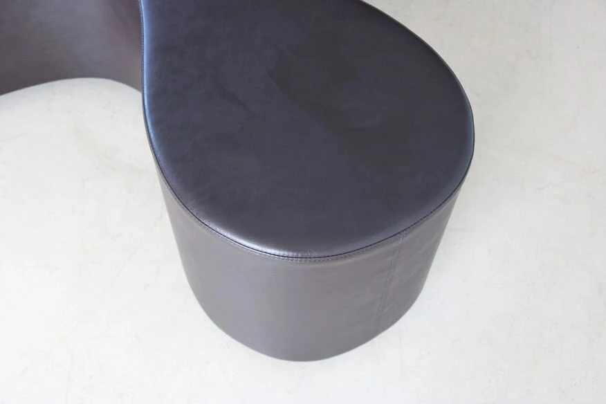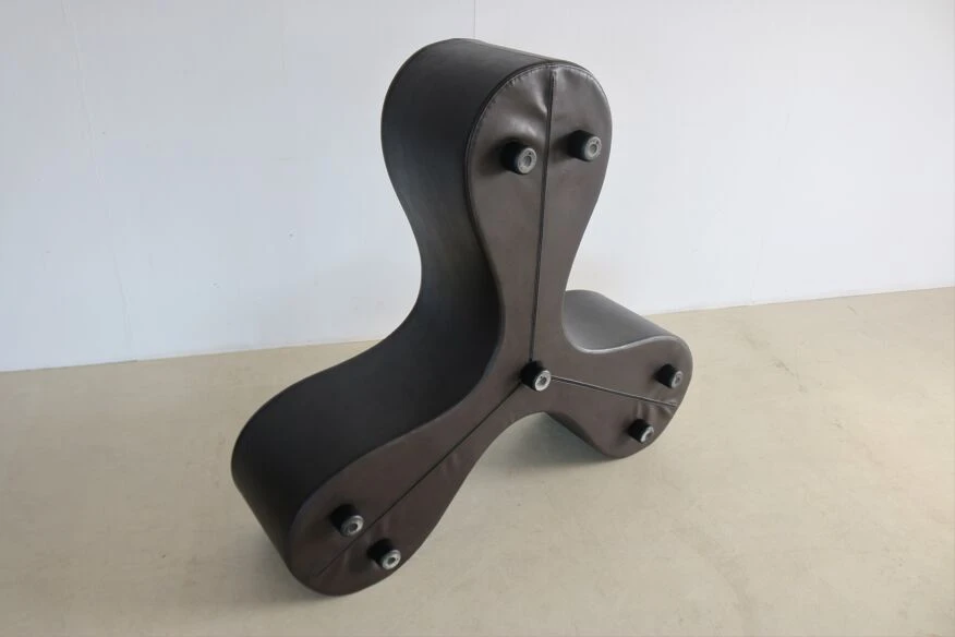 “flower is a sofa with a slender center and a leaf-shaped seat that is reminiscent of a clover or a stylized blossom.