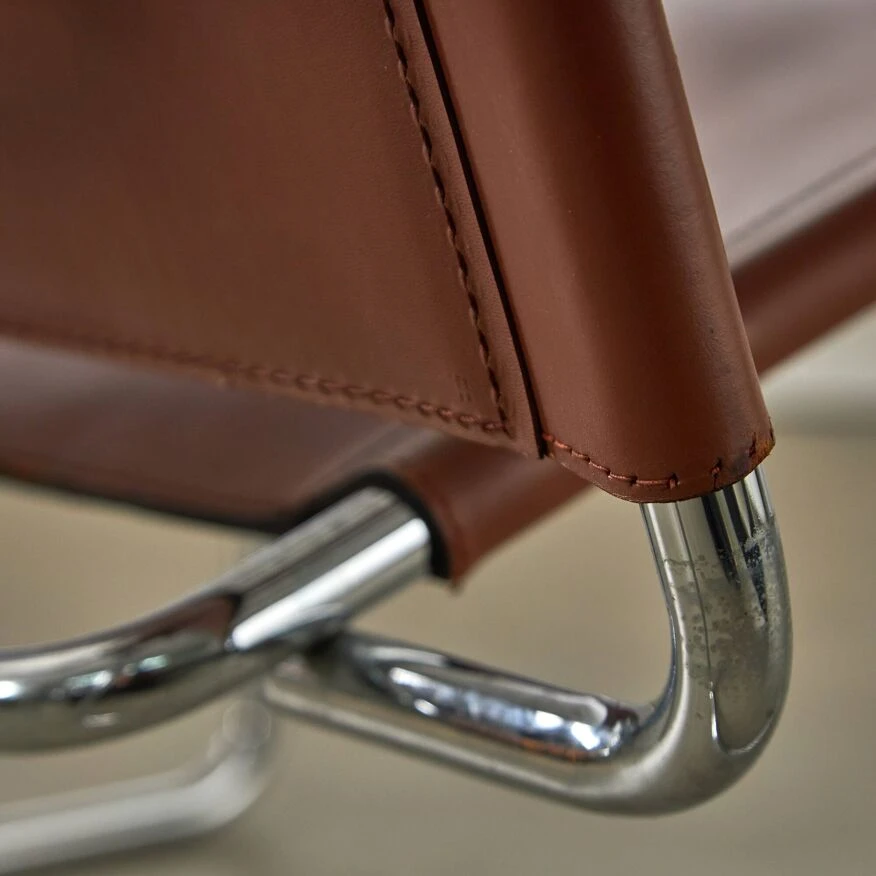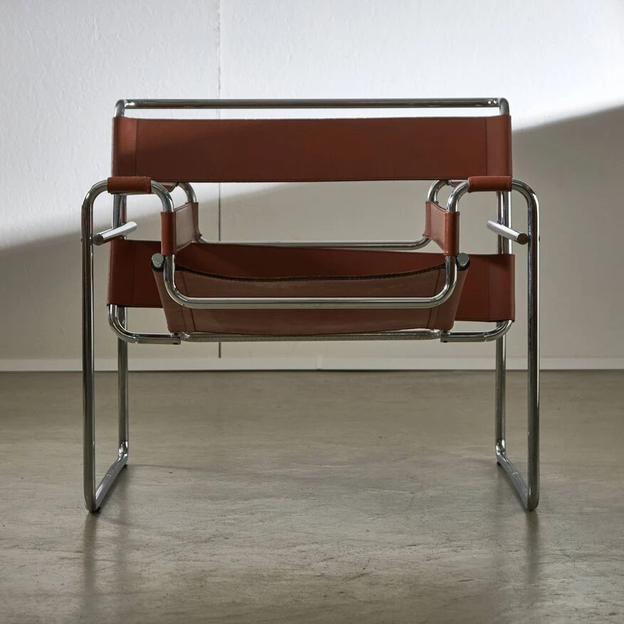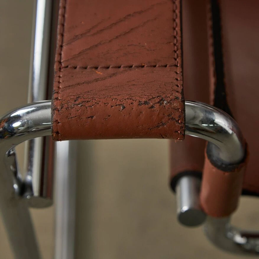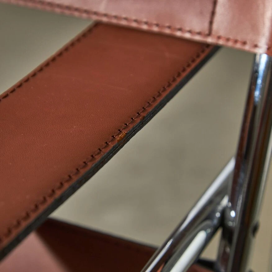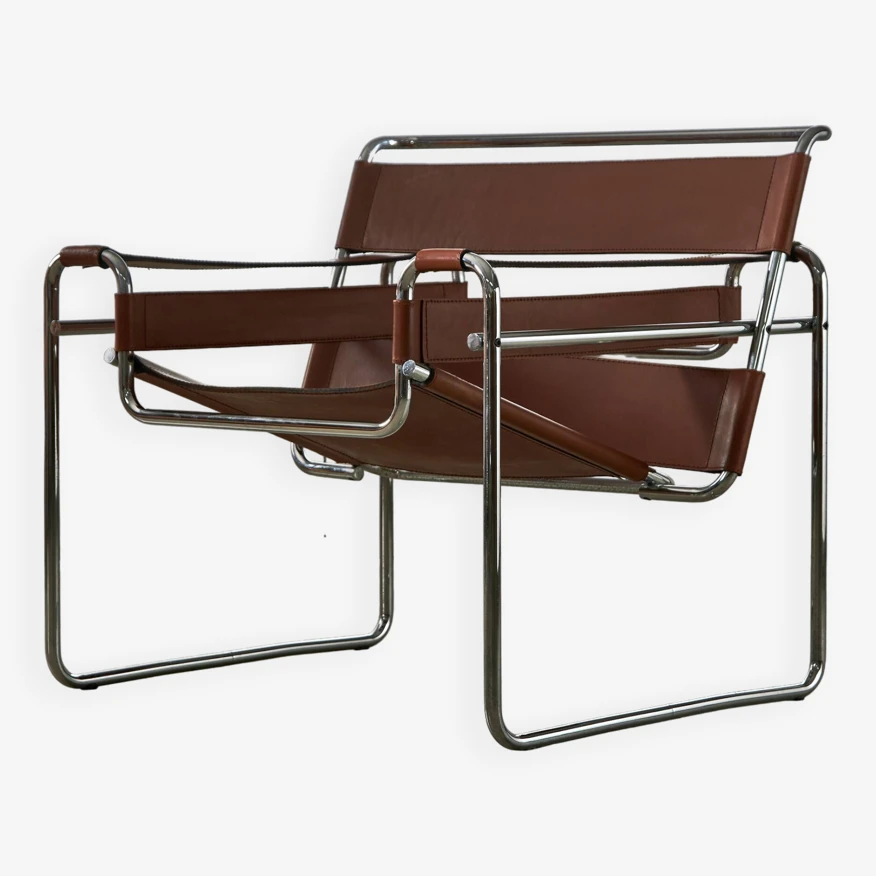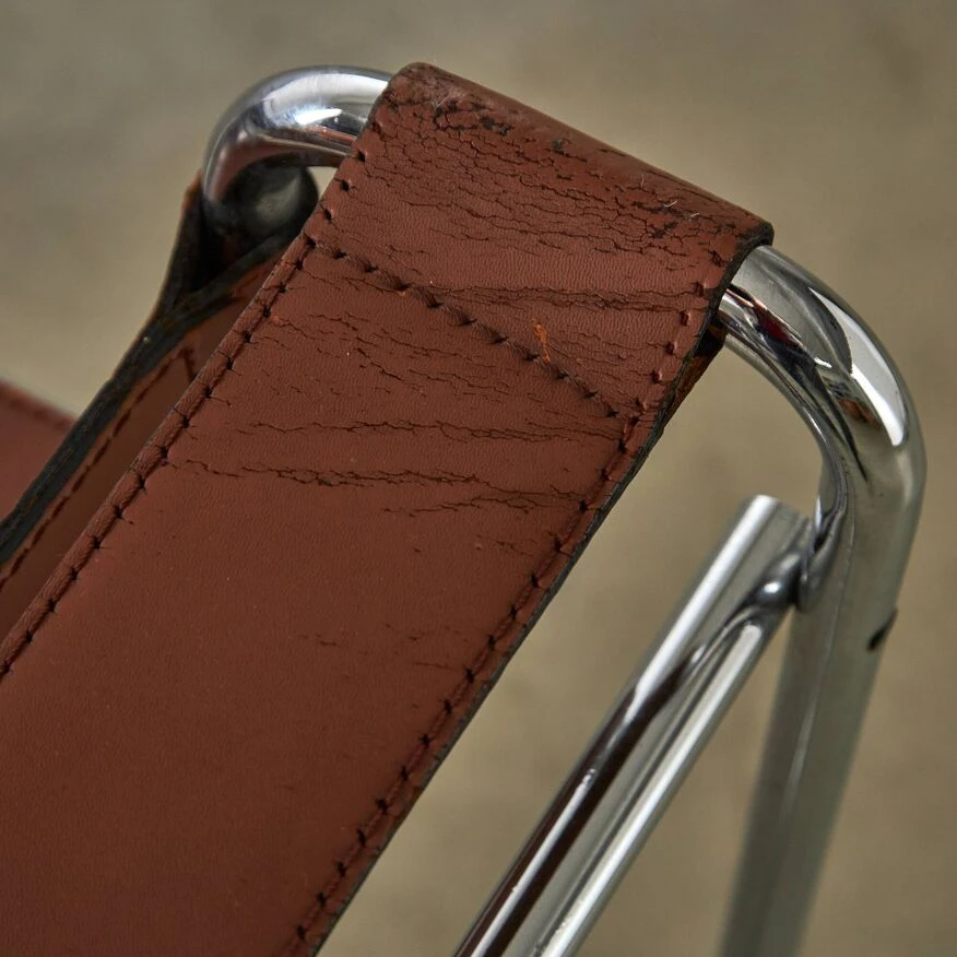 Wassily chair in brown colour by marcel breuer with the designer’s signature on the backrest, dating back to gavina’s production.